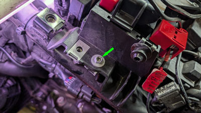 Then, remove the mounting screws for the ABS module bracket. T30 again, one on the left and two on the right.