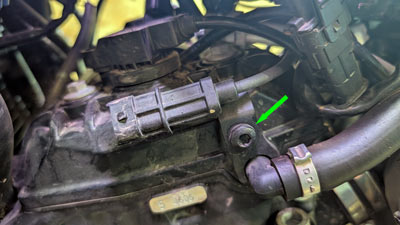 Next, pull the "bleeder flange" screw, then tug the bleeder out of the valve cover. You can separate the electrical plug ends to move them out of the way. This step is also mentioned on page 274 of the 2023 Expedition service manual.