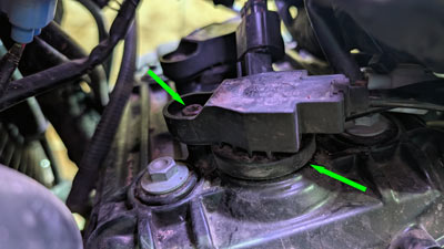 Now pull the screw from each coil (you guessed it--T30) and you can pop them out. They're retained with a rubber gasket, so it does take a bit of force, but you can feel the flex. Gently pry upward on the coil head right near the valve cover. Don't get on the upper housing or force too much. They'll slip out with just a few pounds of pull.